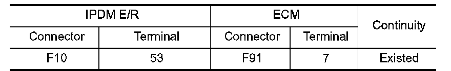 4.Check the continuity between IPDM E/R harness connector and ECM harness connector.