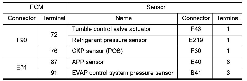 12. CHECK TUMBLE CONTROL VALVE POSITION SENSOR INPUT SIGNAL CIRCUIT FOR OPEN AND