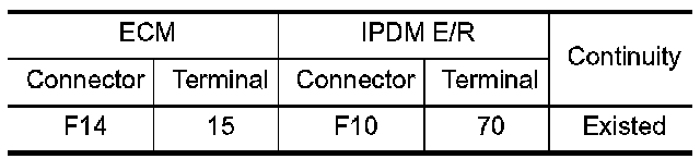 1.Check the continuity between ECM harness connector and IPDM E/R harness connector.