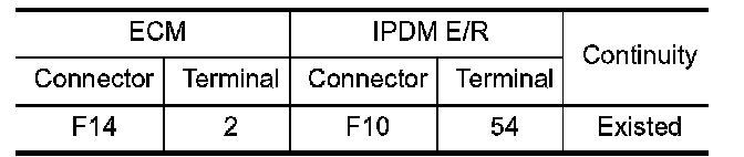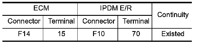 1.Check the continuity between ECM harness connector and IPDM E/R harness connector.