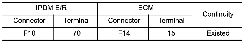 1.Check the continuity between ECM harness connector and IPDM E/R harness connector.