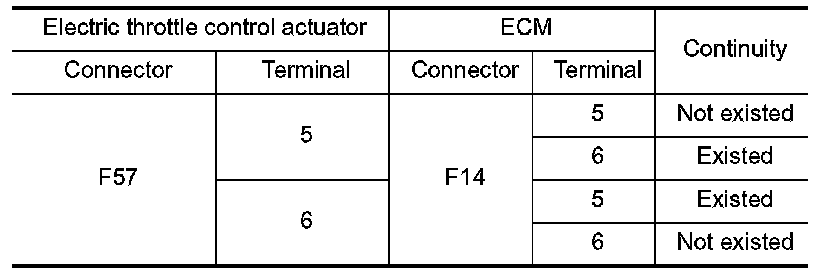 4.Check the continuity between electric throttle control actuator harness connector and ECM harness connector.