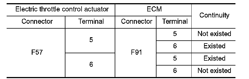 2.Check resistance between electric throttle control actuator terminals as follows.