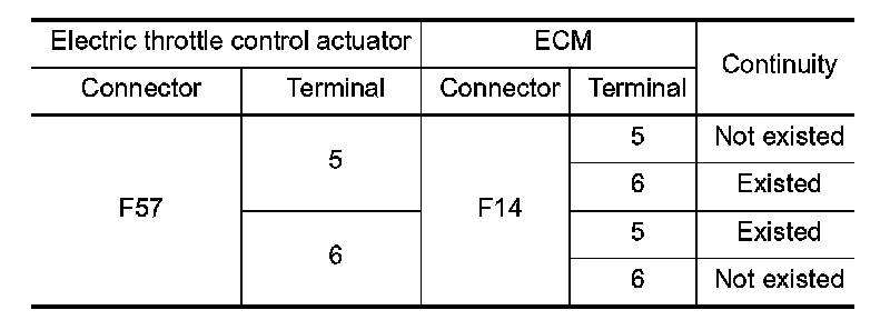2.Check resistance between electric throttle control actuator terminals as follows.