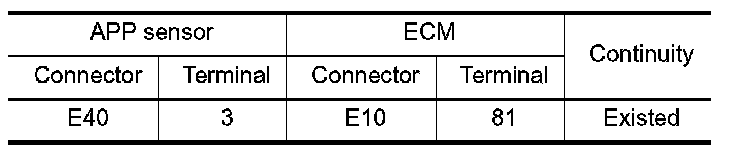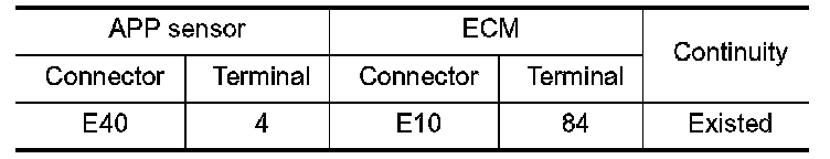 1.Check the continuity between APP sensor harness connector and ECM harness connector.