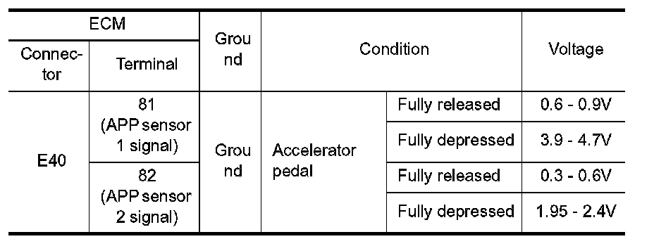 1.Disconnect accelerator pedal position (APP) sensor harness connector.