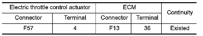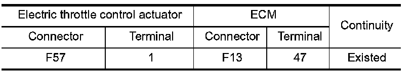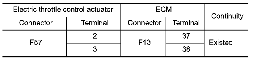 1.Check the continuity between electric throttle control actuator harness connector and ground.