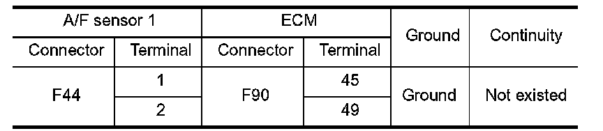 4.Check the continuity between ECM harness connector or A/F sensor 1 harness connector and ground.