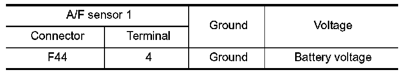 2.Check the voltage between A/F sensor 1 harness connector and ground.