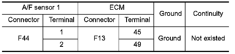 4.Check the continuity between ECM harness connector or A/F sensor 1 harness connector and ground.