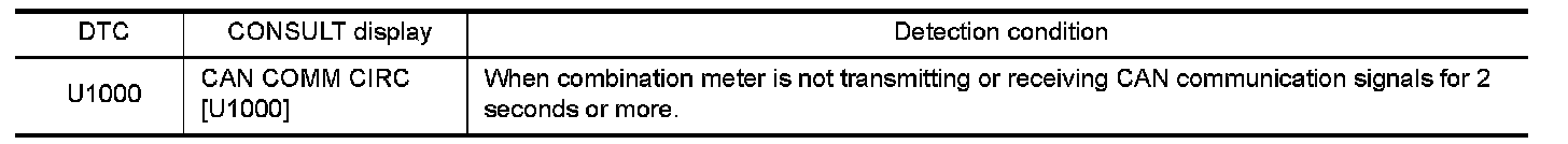 Symptom: Displays "CAN COMM CIRC [U1000]" as a self-diagnosis result of combination meter.