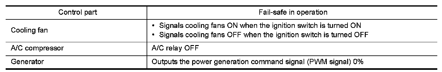 When CAN communication with ECM and BCM is impossible, IPDM E/R performs fail-safe control. After CAN communication recovers normally, it also returns to normal control.