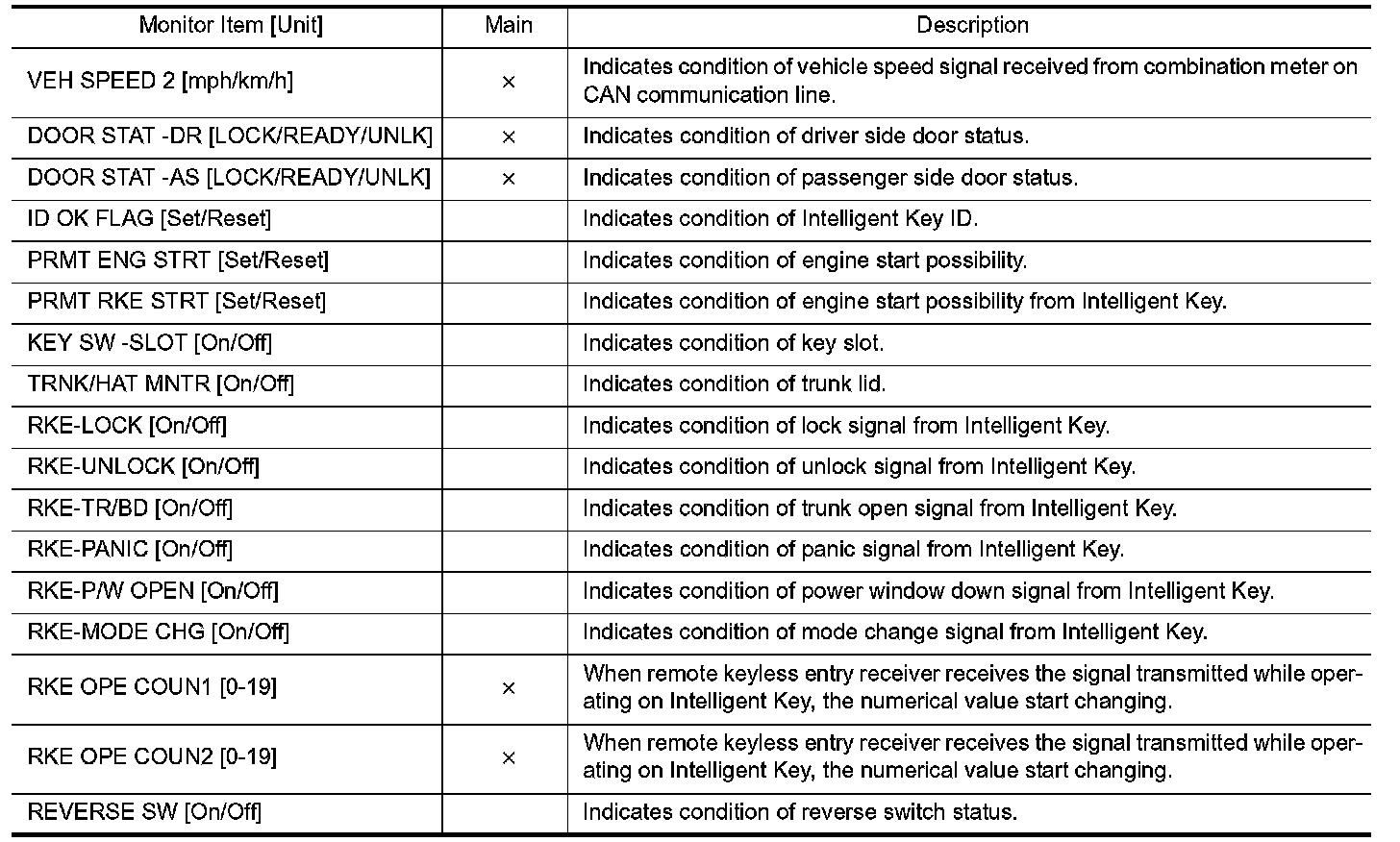INTELLIGENT KEY : CONSULT Function (BCM - INTELLIGENT KEY)