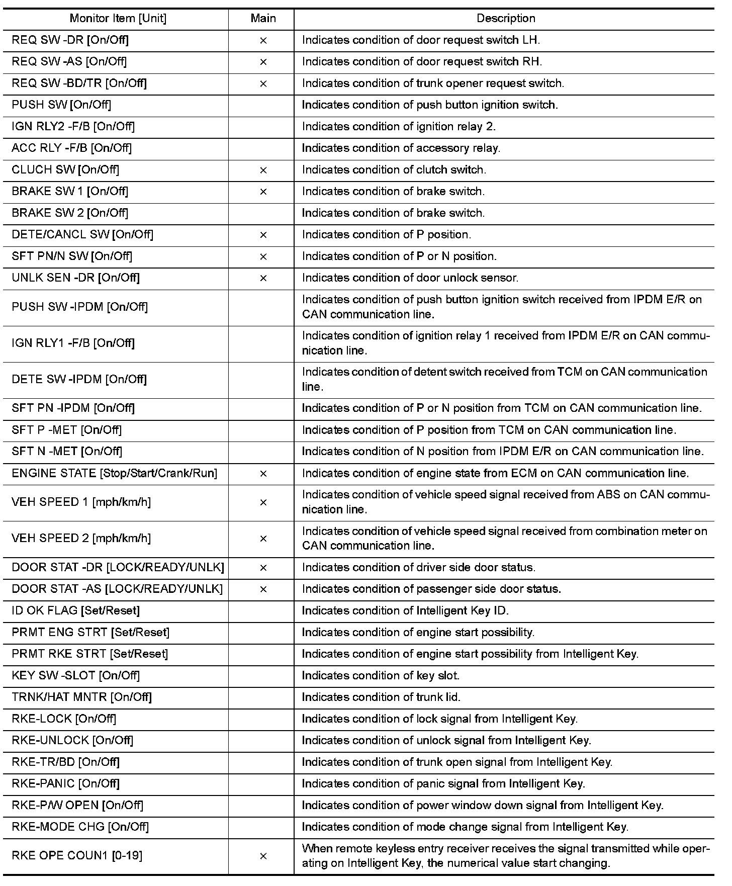 INTELLIGENT KEY : CONSULT Function (BCM - INTELLIGENT KEY)