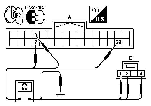 4.Check continuity between Bluetooth control unit harness connector B55 (A) and ground.