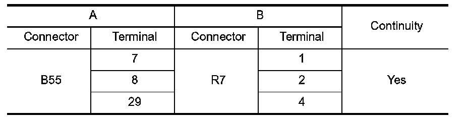 3.Check continuity between Bluetooth control unit harness connector B55 (A) and microphone harness connector R7 (B).