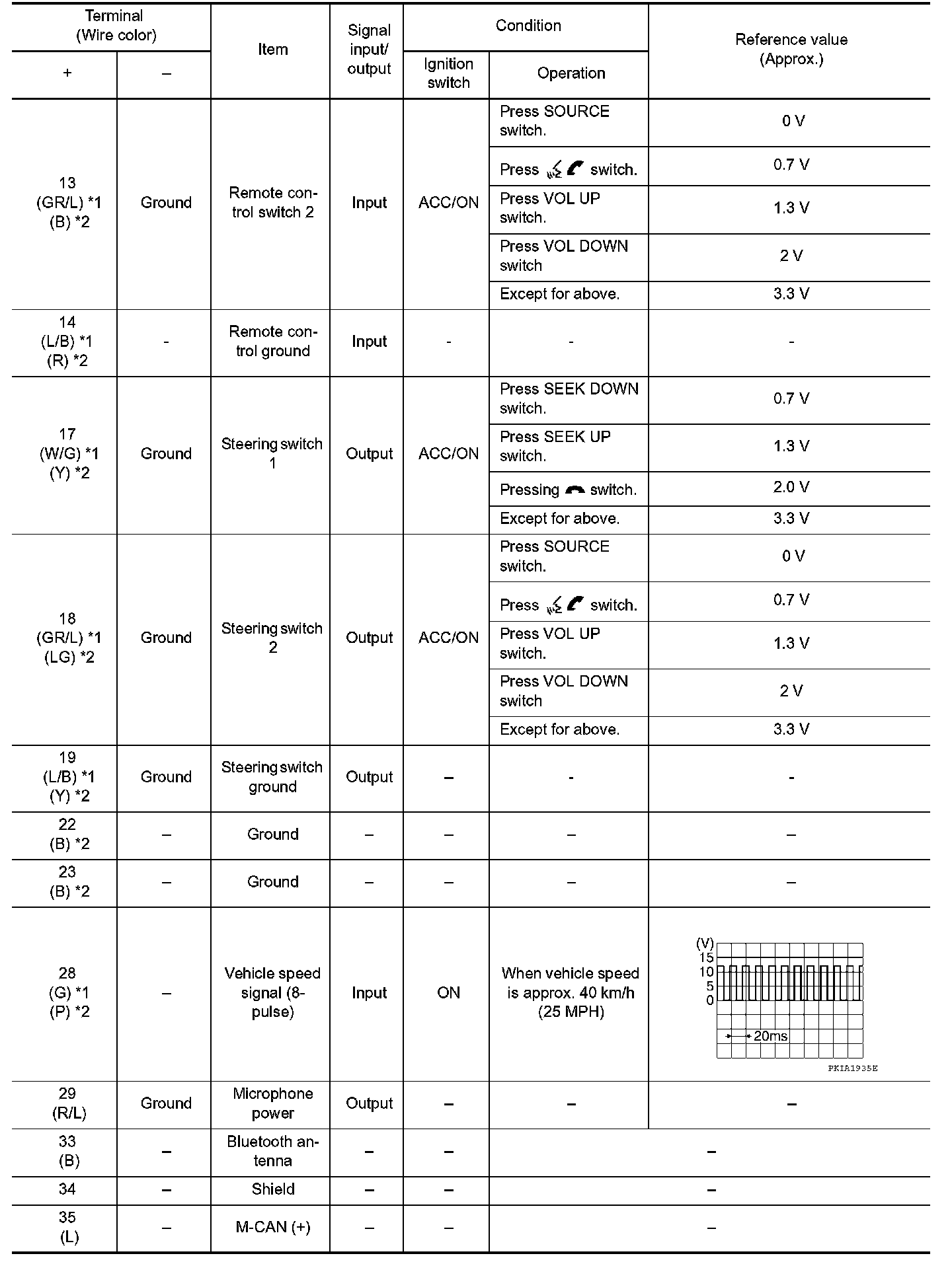 Pinout Values and Diagnostic Parameters