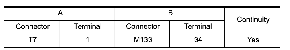 T7 (A) terminal 1 and audio unit harness connector M133 (B) terminal 34.