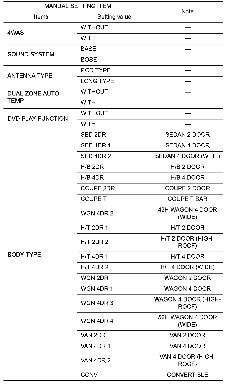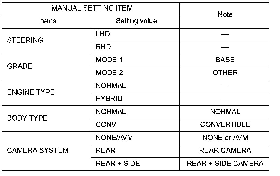 CONFIGURATION (AV CONTROL UNIT) : Configuration List