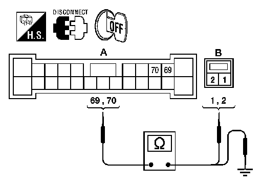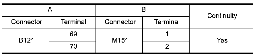 2.Check continuity between BOSE speaker amp. harness connector B121 (A) and center speaker harness connector M151 (B).