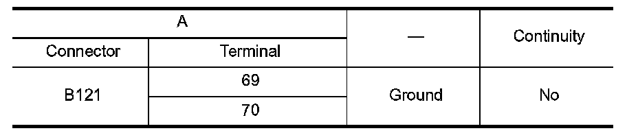 3.Check continuity between BOSE speaker amp. harness connector B121 (A) and ground.