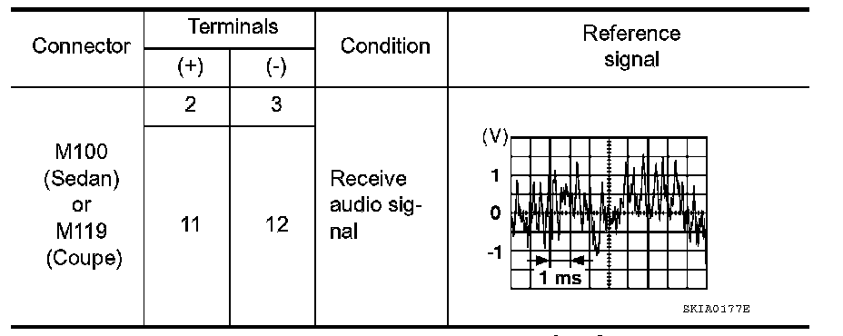 (Sedan) or M119 (Coupe) terminals with CONSULT or oscilloscope.
