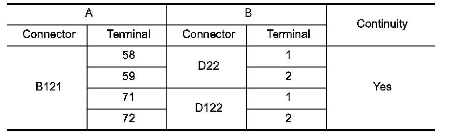 2.Check continuity between BOSE speaker amp. harness connector B121 (A) and suspect speaker harness connector (B).
