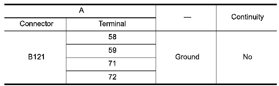 3.Check continuity between BOSE speaker amp. harness connector B121 (A) and ground.