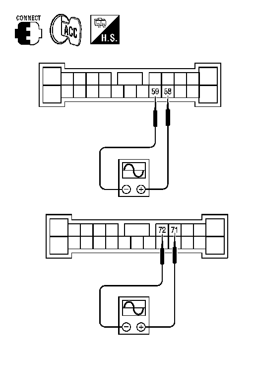 4.Check the signal between AV control unit harness connector terminals with CONSULT or oscilloscope.