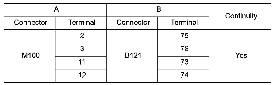 1.Disconnect AV control unit connector M100 and BOSE speaker amp. connector B121.