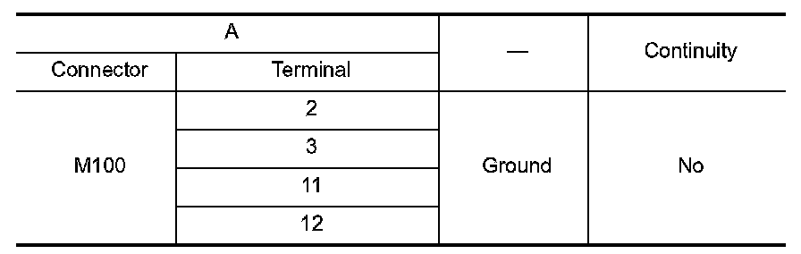 2.Check continuity between audio unit harness connector M100