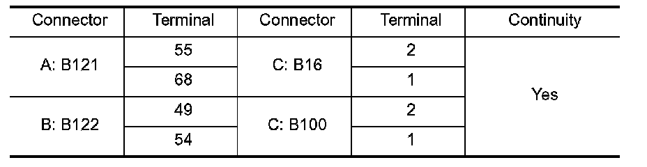 3.Check continuity between BOSE speaker amp. harness connectors B121 (A) and B122 (B) and ground.