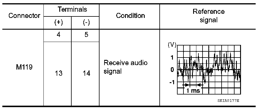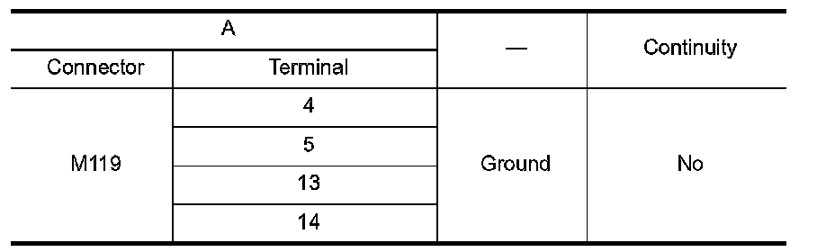 1.Disconnect AV control unit connector M119 and BOSE speaker amp. connector B121.