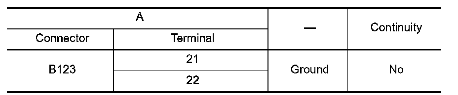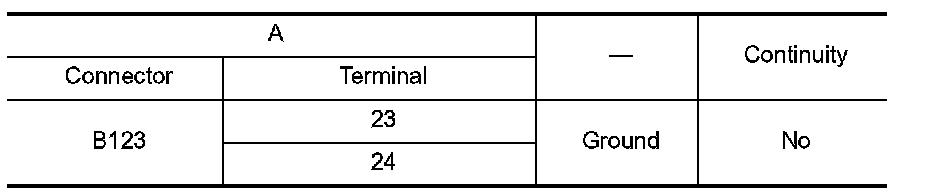 4.Check continuity between satellite radio tuner (factory installed) connector B123 (A) and ground.