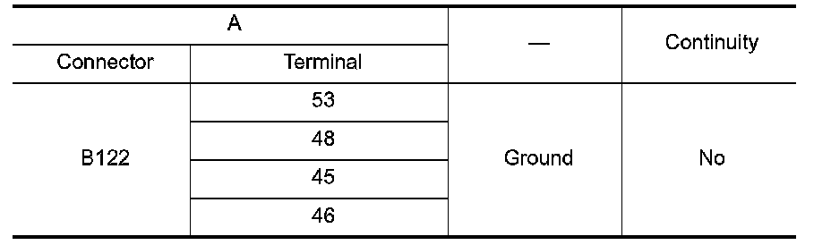 3.Check continuity between BOSE speaker amp. harness connector B122 (A) and ground.