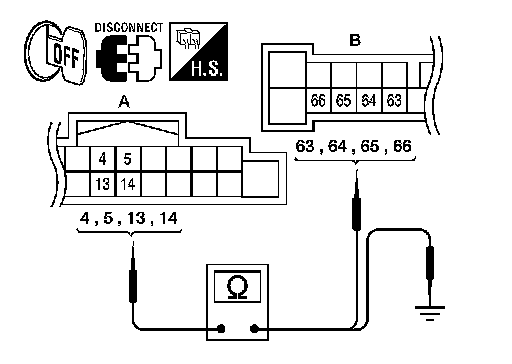 1.Disconnect AV control unit connector M100 and BOSE speaker amp. connector B121.