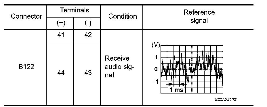 4.Check the signal between BOSE speaker amp. harness connector B122 terminals with CONSULT or oscilloscope.