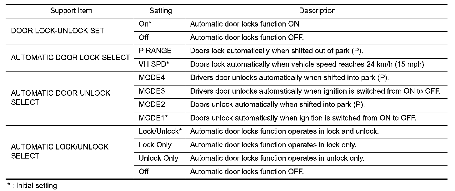 DOOR LOCK : CONSULT Function (