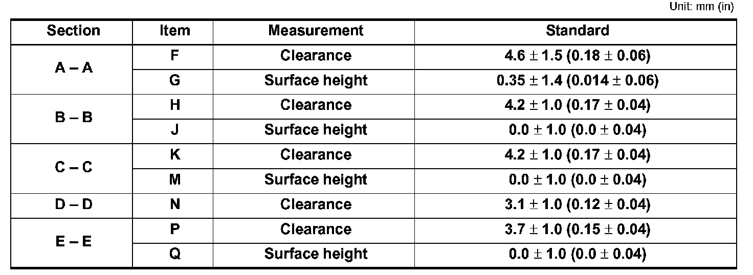3.Loosen the hinge to body bolts. Move the front door forward or backward as necessary until within specifications.