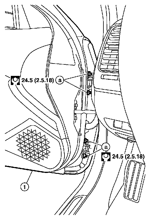 4.Remove the door-side hinge nuts (a) and the door assembly (1).
