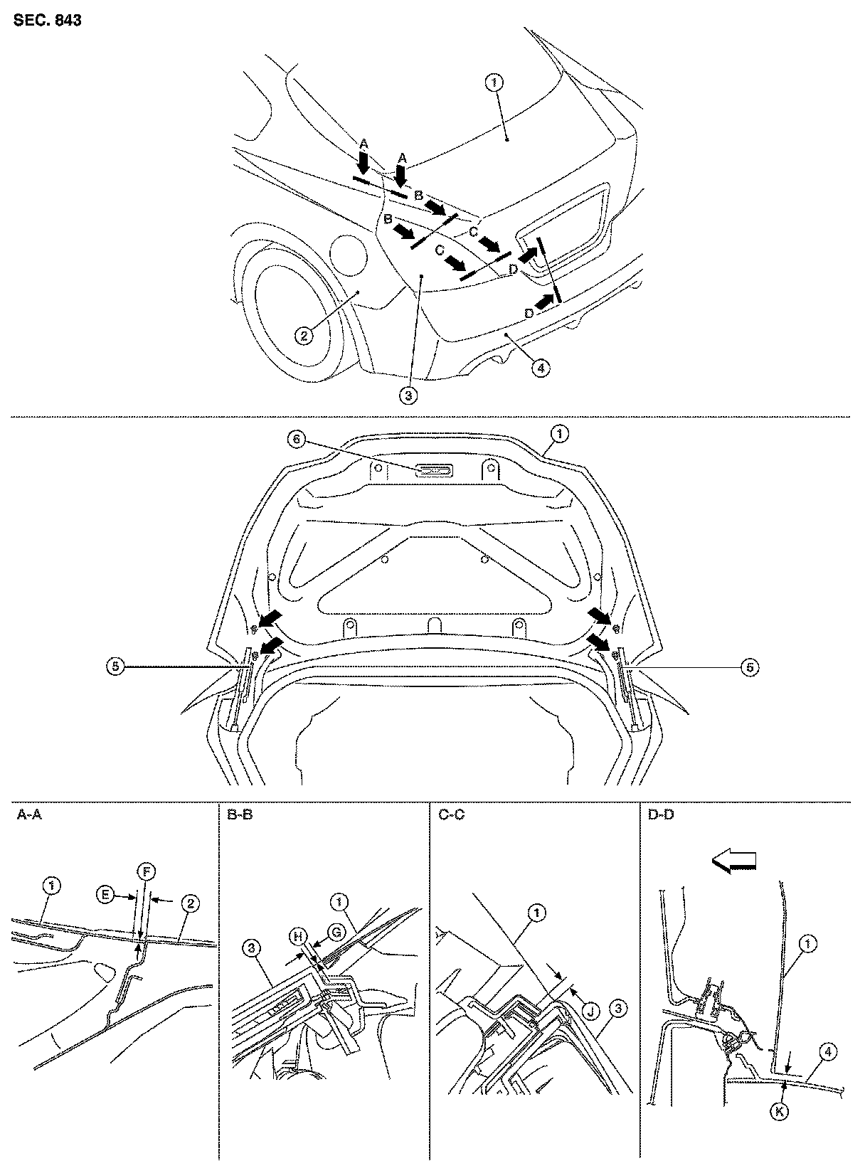 3.Move the trunk lid so that the clearance measurements are within specifications.
