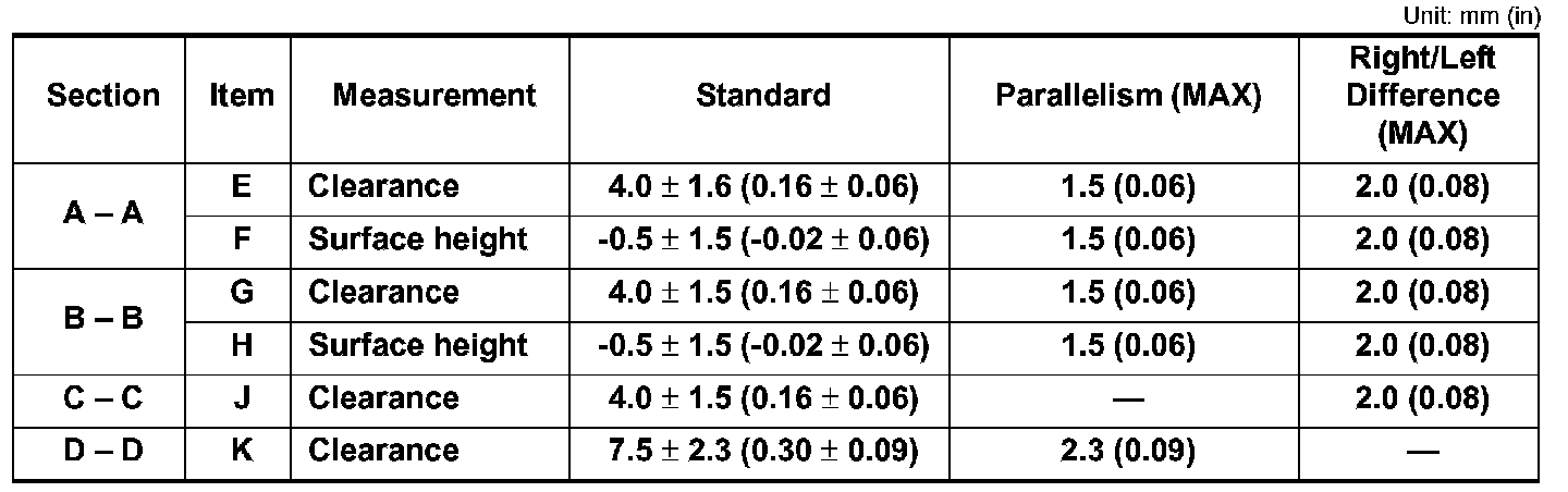 1.Check the clearance and the evenness between the trunk lid and each part by visual inspection and tactile feel.