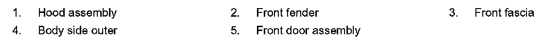 5.Adjust the clearance (J) and surface height (K) between the front fender and the front door.