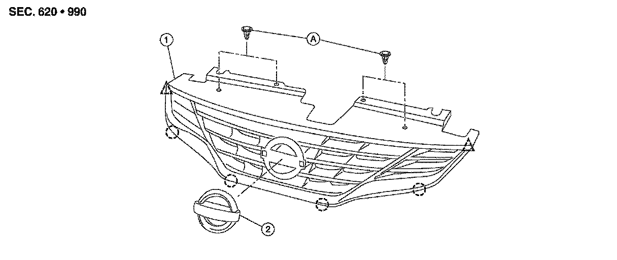 2.Release the grille clips and pawls from the front bumper fascia, then remove the front grille.