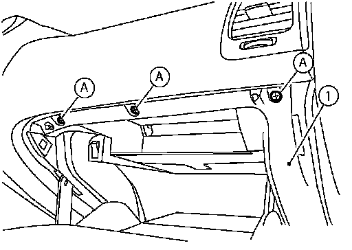 2.Open the glove box door (1), remove the glove box assembly screws (A).