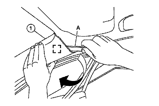 2.Release the front pillar finisher (1) upper and lower clips by carefully prying inward while, using a suitable tool (A).