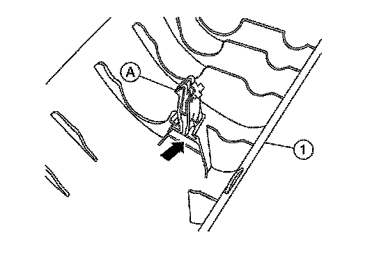 1.Insert the front pillar finisher lower clip (A), onto the front pillar finisher (1) by sliding into the slot.
