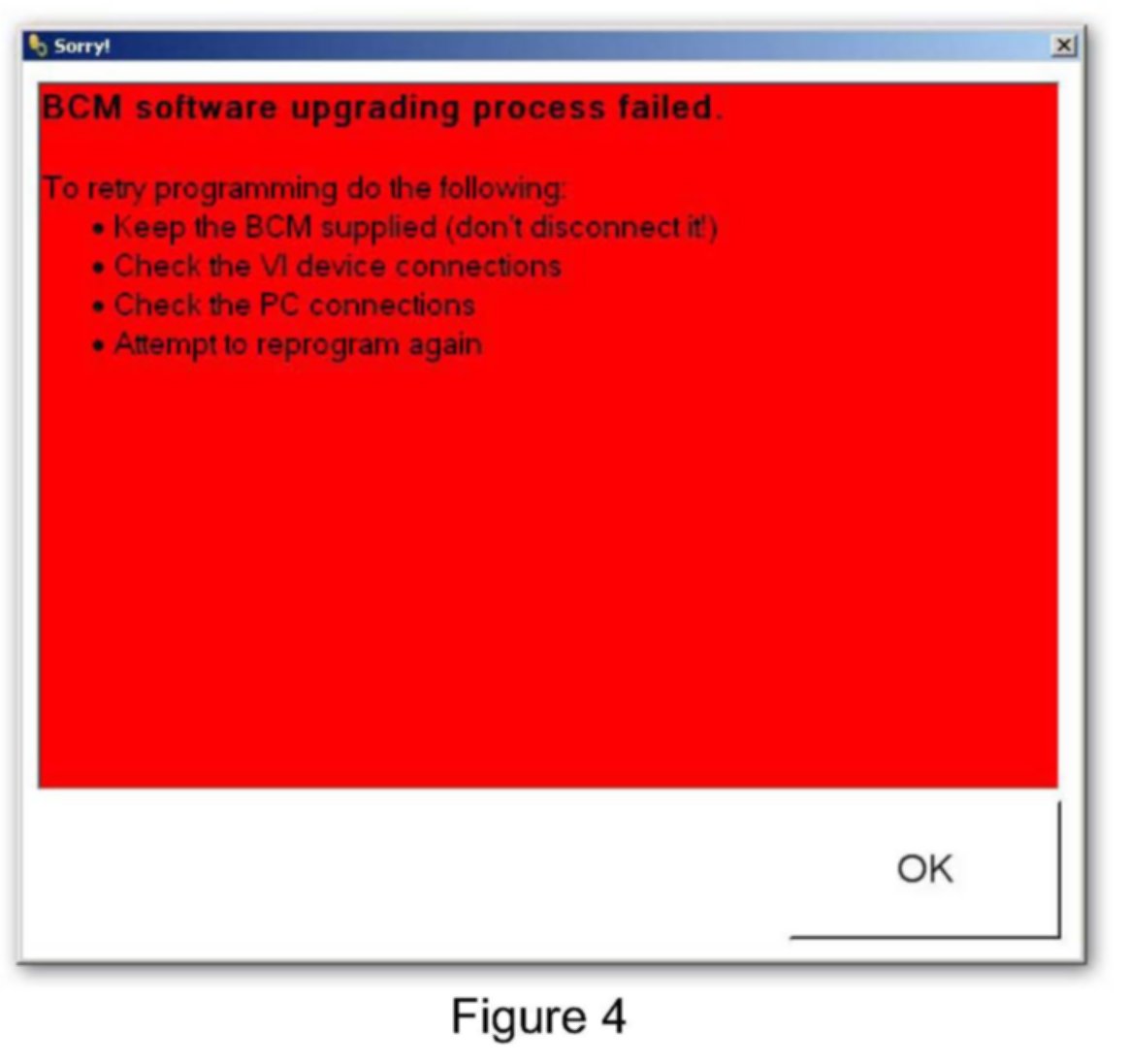 Error - BCM reprogramming failed (reprogramming did not complete correctly)