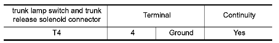 Check continuity between trunk lamp switch and trunk release solenoid connector and ground.