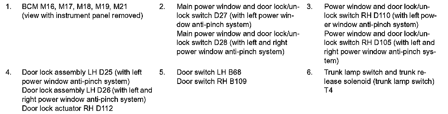 DOOR LOCK AND UNLOCK SWITCH : Component Parts Location